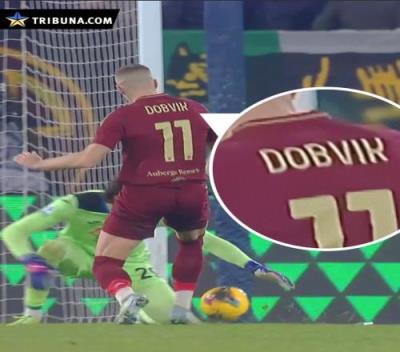 体育资讯12月4日报道宣称 罗马在本轮意甲0-2不敌亚特兰大,细心的球迷发现多夫比克的球衣名字印错了。