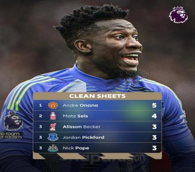 5次零封英超第一!英超官推发问:奥纳纳能赢得本赛季金手套吗