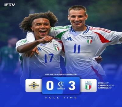 体育资讯7月19日报道宣称 今天,意大利U19在欧洲杯中3-0击败北爱尔兰,米兰青训小将卡马尔达梅开二度。