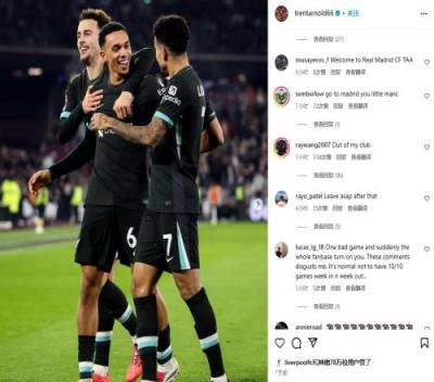 讨伐&维护!阿诺德社媒评论区:滚出我的球队依旧爱你YNWA