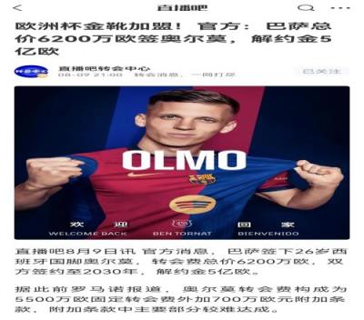 倒计时开始若巴萨明晨6点59分仍未注册奥尔莫,后者可自由身离队