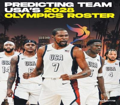 体育资讯08月13日报道宣 ClutchPoints记者预测2028年洛杉矶奥运会12人名单,其中杜兰特迎最后一舞。