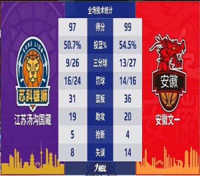 8月17日晚,安徽文一在NBL常规赛第25轮比赛中客场对阵江苏汤沟国藏。在达卡里·约翰逊五犯离场不利局面下,特洛伊·吉伦沃特发力,狂砍44分9篮板,帮助安徽文一以99-97战胜江苏。凭借本场胜利,安徽文一也提前一轮获得常规赛冠军。