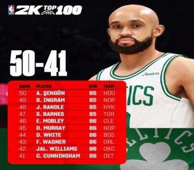 新赛季2K能力值Top5031:申京莺歌85绿军三首发在列