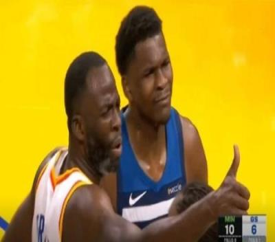 比赛第一节,爱德华兹推翻库明加,追梦难得一见过来当和事佬,他一边搂着爱德华兹一边冲替补席竖大拇指。