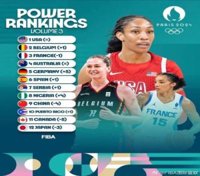 体育资讯8月6日报道宣 FIBA官网更新实力榜,中国女篮下降至第9,美国蝉联第一,日本下降至第12。