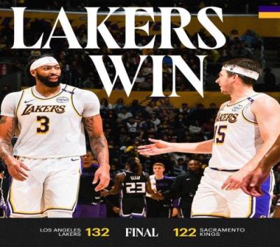体育资讯12月29日报道宣称 NBA常规赛,湖人以132-122战胜国王。