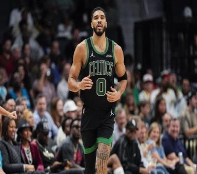 绿军球星塔图姆表现全面,全场出战35分钟,19投12中,三分6中5,罚球9中7,爆砍36分9篮板10助攻的准三双数据,正负值+24。