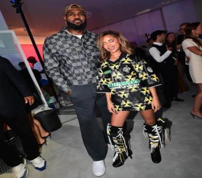 体育资讯07月26日报道宣称 今日,美国队训练结束后詹姆斯出席了活动,与女歌手Tyla进行了合照。
