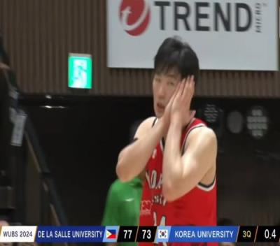 第三节比赛即将结束之际,高丽大学后卫、20岁韩国男篮国青队队员Yuhyeon Moon站上罚球线,他罚球不进队友点抢篮板,Yuhyeon Moon拿到球在左侧弧顶出手三分轰进,随后他模仿了库里的“晚安”庆祝动作,彼时高丽大学以73-77落后。