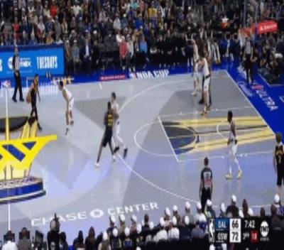东契奇吃掩护直接换防,库里单挑中锋打进