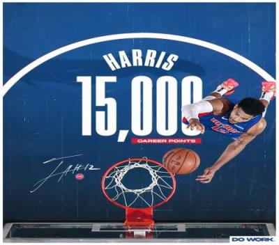 至此,哈里斯生涯得分突破15000大关,活塞官推也晒图送上祝福。