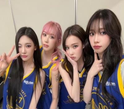 SM女团Aespa今日更新社媒,联动金州勇士为库里全明星拉票。