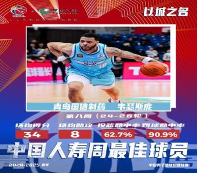 体育资讯1月5日报道宣称 今日,CBA官方宣布青岛外援韦瑟斯庞当选CBA常规赛第八周周最佳,原文如下: