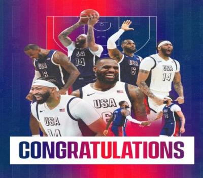 体育资讯8月11日报道宣 奥运男篮金牌赛,美国98-87战胜法国,夺得金牌。