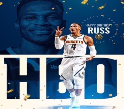 体育资讯11月13日报道宣称 今天是掘金球星拉塞尔-威斯布鲁克的36岁生日,让我们一起祝他生日快乐。