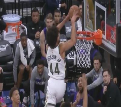 10、小安德烈-杰克逊在篮筐上吃饭,高筐一尺逆天“放”扣。