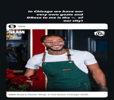 韦德更新IG动态转发罗斯在花店的照片,配文写道:“在芝加哥,我们有自己的GOAT(历史最佳球员),对我来说,德里克-罗斯就是我们城市的