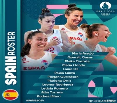 中国女篮同组对手!西班牙女篮公布奥运会12人名单