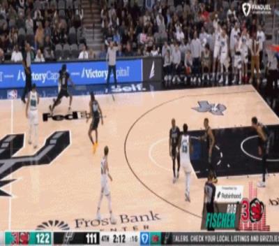 今天灰熊队129-115战胜马刺队的比赛,莫兰特隔扣文班亚马。