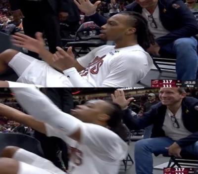 体育资讯11月13日报道宣称 在昨天骑士击败公牛的比赛中,一位球迷想和加兰击掌,但后者专注于庆祝没看见。