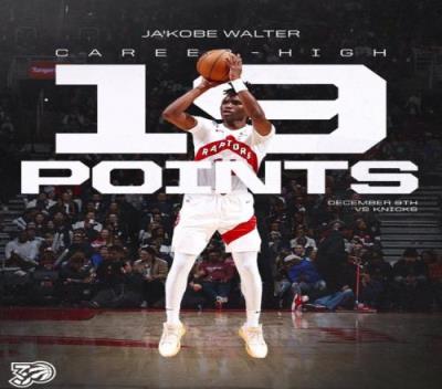 空砍生涯新高!猛龙新秀贾科比沃尔特12中6得19分2助