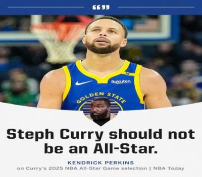 谈到库里入选全明星,帕金斯表示:“库里本赛季入选了全明星,但我看到很多像欧文这样的球员,还有布克、福克斯等,仅在他们的分区内,本赛季就有很多表现比他更好的球员,听着,我要大声说出一个不太流行的观点——斯蒂芬-库里不应该入选全明星,他不该进。”