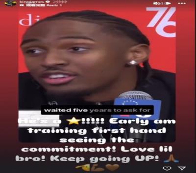 对此,詹姆斯转发评论道:“他(马克西)是一个明星。我一早起来训练就看到了他的承诺。爱你兄弟。继续加油
