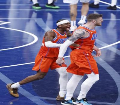 雷霆在淘汰赛中先后战胜独行侠和火箭,他们将冲击队史第一座冠军奖杯。