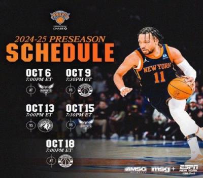 体育资讯8月12日报道宣 今天,尼克斯队公布了球队24-25赛季季前赛的赛程。