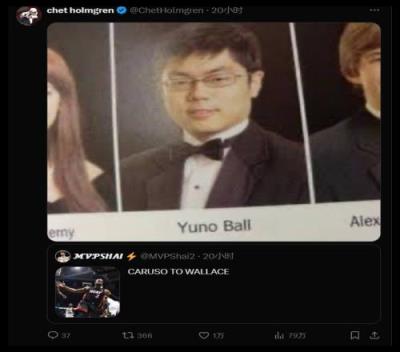 切特-霍姆格伦表示同意,他发布梗图表示:“你懂球!(Yuno Ball 即 You know Ball)”