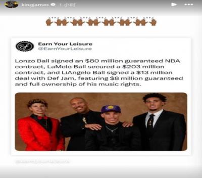 而值得一提的是,朗佐-鲍尔之前签下的是4年8000万美元的保障合同,拉梅洛-鲍尔签下的是5年2.03亿美元的合同。