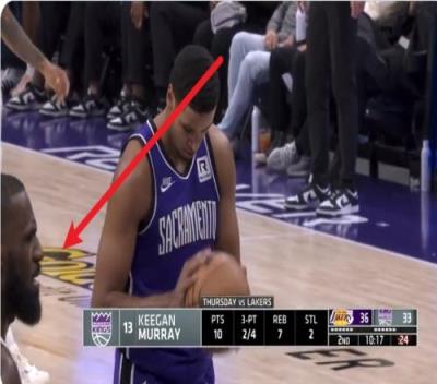 比赛第二节,基根-穆雷罚球期间,詹姆斯对场边一位国王球迷喷了一句垃圾话:“吸你TMD啤酒然后闭上你的臭嘴(sip your fking beer and shut the fu*k up)!”