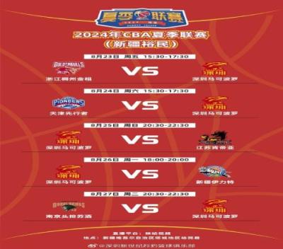 2024年CBA夏季联赛·裕民站将于8月23日-8月27日在裕民体育中心火热开赛!深圳马可波罗、江苏肯帝亚、新疆伊力特、浙江稠州金租、南京头排苏酒、天津先行者六支队伍将齐聚新疆裕民县。本次比赛将采用积分制,决出最终的冠军归属。