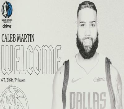 体育资讯02月05日报道宣称 官方消息,76人送出凯莱布-马丁,从独行侠得到格莱姆斯和2025年次轮签(掘金和76人顺位更高的一个)。