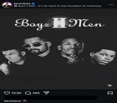 热火老将乐福更新IG晒出一张自己、巴特勒、希罗和洛瑞4人模仿著名的R&B演唱组合Boyz II Men的P图,并晒出该组合单曲《It's So Hard To Say Goodbye To Yesterday(和昨天难说再见)》。