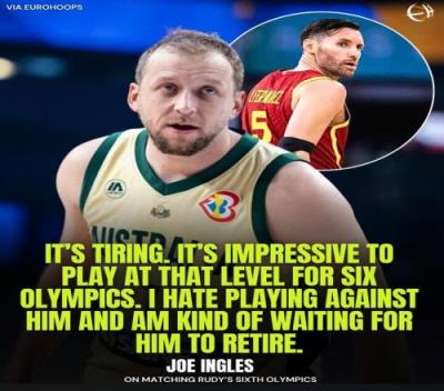 当被问及是否会尝试追平鲁迪的纪录,英格尔斯打趣道:“这太累了。在这样的水平上征战了六届奥运会,仍能够为球队做出贡献,在球队中扮演重要角色这真的令人印象深刻。我讨厌和他交手,有点期待他退役。”
