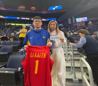 今天,一位名为Rick的中国球迷为了看勇士的比赛专程来美国旅游,李凯尔为其送上签名(签名球衣为李凯尔在国家队的1号球衣)。