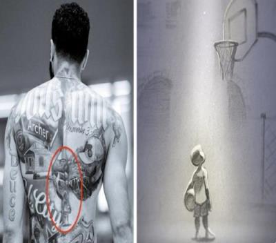 这处纹身是由科比制作的奥斯卡获奖影片《亲爱的篮球》中的主角。