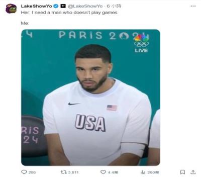 LakeShowYo这是在嘲讽昨晚的比赛塔图姆没有上场。