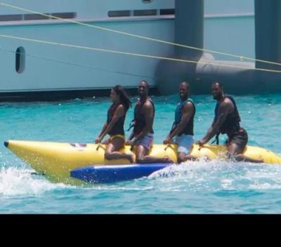 “所以我去了自己的船上,他们开着香蕉船来到我这边,再次邀请我加入。他们说,‘快来快来。’我说,‘我不可能和你们一起上去。如果他们拍到了我们在香蕉船上的照片,这就太疯狂了!’”