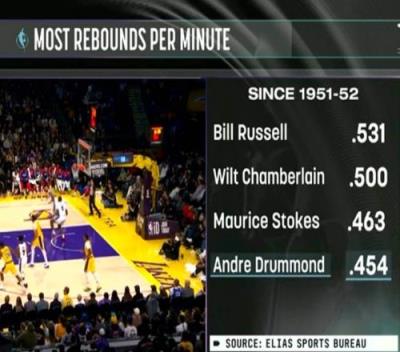 比赛进行到第四节,转播方晒出数据,NBA自1951-52赛季以来,球员每分钟篮板数排行榜如下: