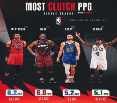 小托马斯17年场均5.1分关键得分比肩17年威少&07年韦德&24年库里