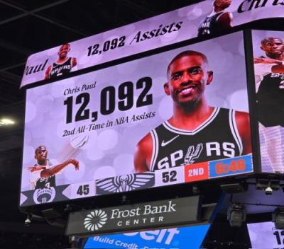马刺名宿吉诺比利在现场见证了这一时刻,他晒出球场上方大屏幕的照片,并写道:“不可思议!助攻榜历史第二!恭喜保罗,这助攻数也太多了吧!”