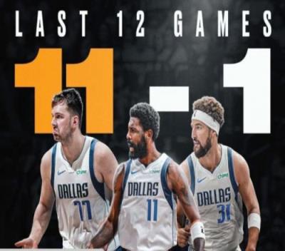 更有甚者,东契奇仅出战了12场中的6场,独行侠依然取得如此佳绩。上一场对阵猛龙,三头怪齐发威,东契奇得到30分13个篮板11次助攻的三双,欧文得到29分6个篮板4次助攻,克莱得到20分5个篮板。这还是不多见的。