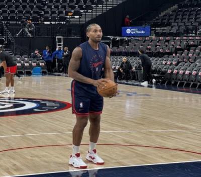 多位快船随队记者晒照,莱昂纳德目前已经来到球场进行热身。