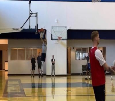 球队中锋霍姆格伦已经开始恢复球场训练,并在训练中完成了一记扣篮。