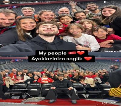 赛后,申京和现场观战的来自土耳其的球迷合影。
