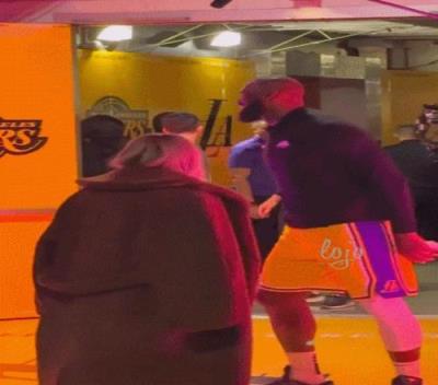 赛后,詹姆斯妻子萨瓦娜在球员通道和老公交流一波,老詹三步一回首乐得直摇头。