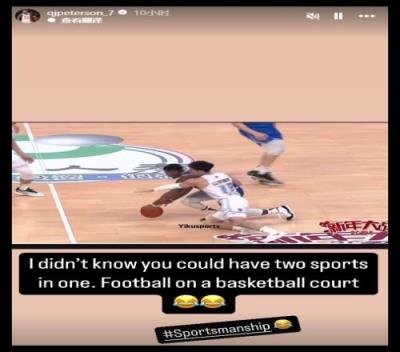 赛后,新疆外援皮特森吐槽山东后卫于德豪对自己的防守动作。他写道: